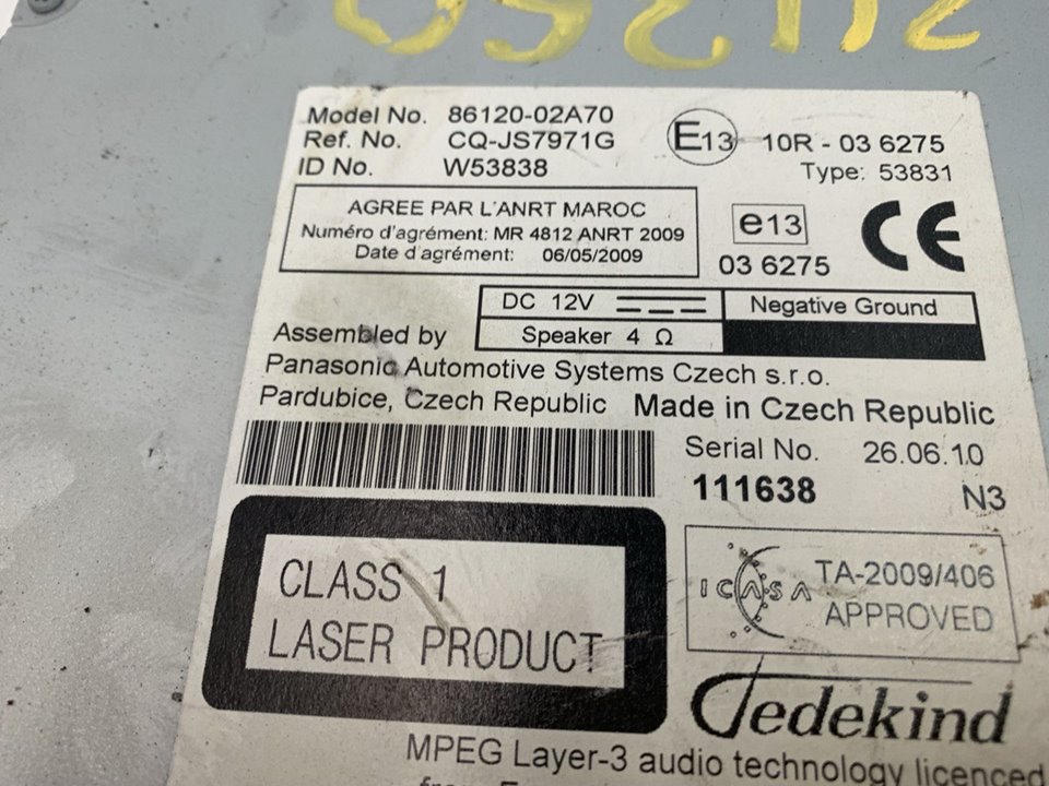 SISTEMA AUDIO / RADIO CD TOYOTA AURIS E15 Active 1ND Año 2010